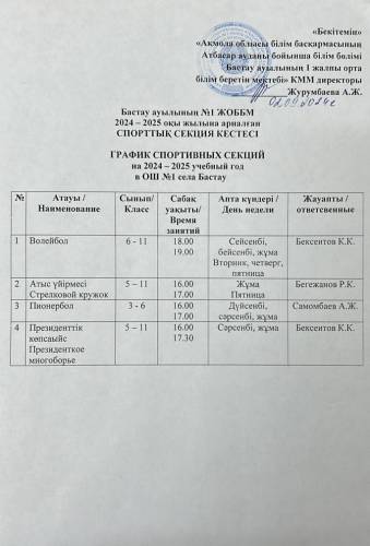 в КГУ «Общеобразовательная школа №1 села Бастау